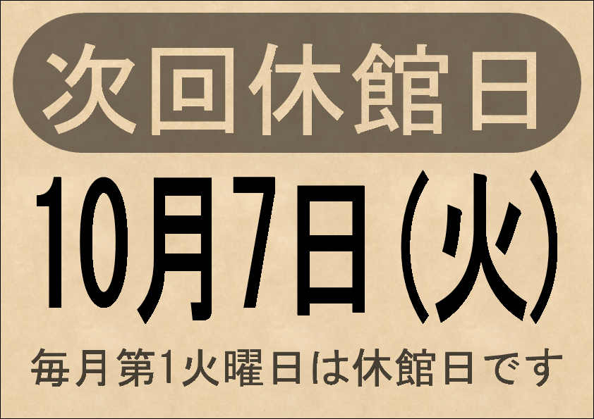 9月2日(火曜)・3日(水曜)は、休館日です。
