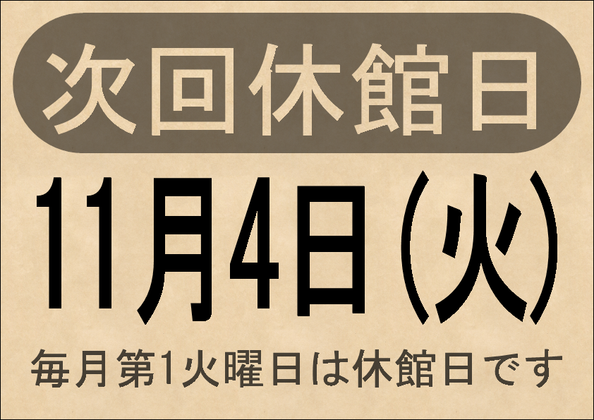 毎月第一火曜日は、機械設備の点検整備のため、休館日とさせていただきます。