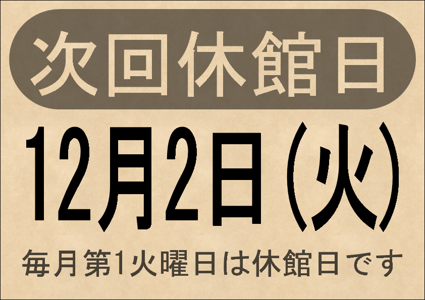 毎月第一火曜日は、機械設備の点検整備のため、休館日とさせていただきます。